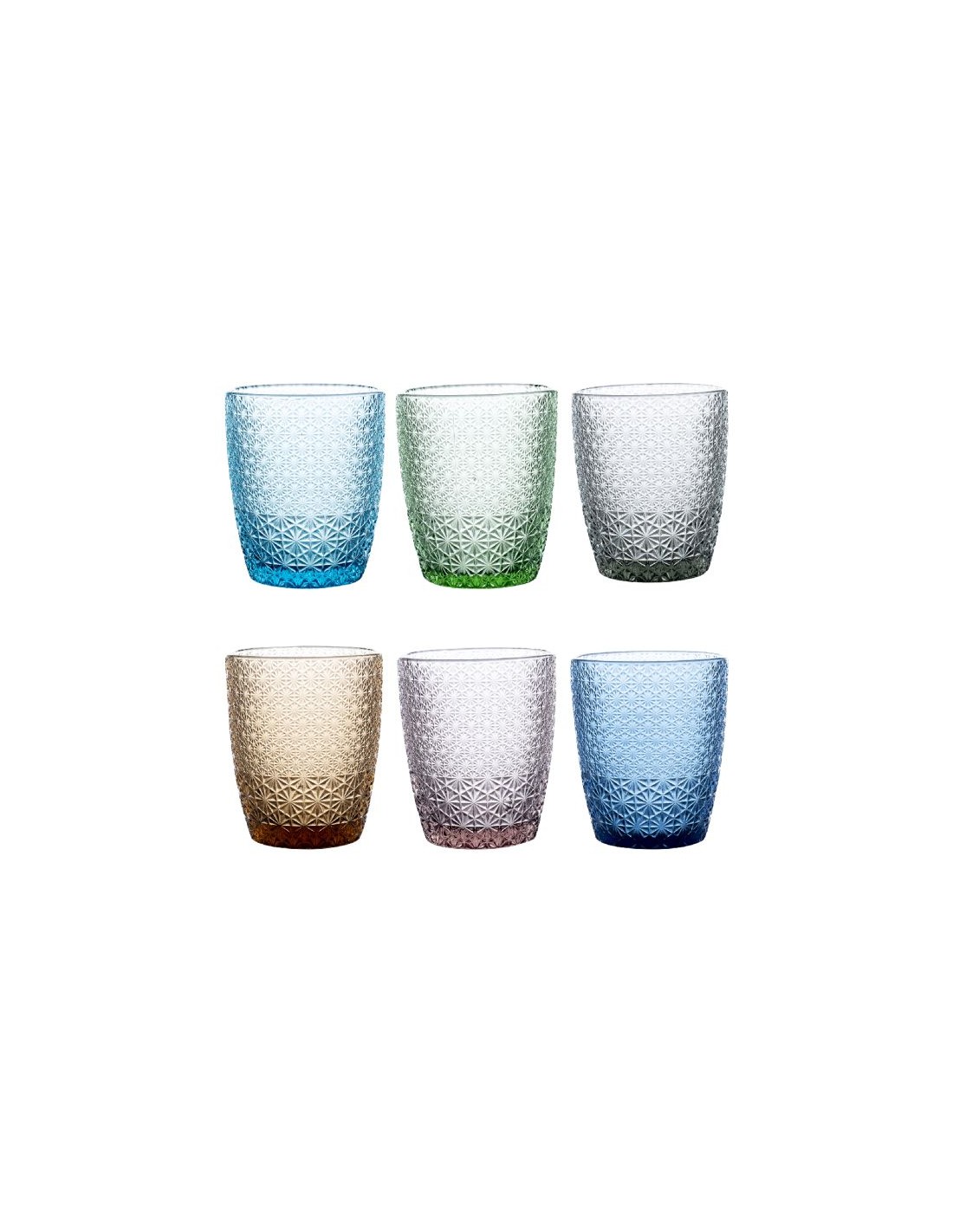 I bicchieri acqua Mozart sono adatti ad una tavola originale. Realizzati in pasta di vetro con motivo geometrico a rilevo.