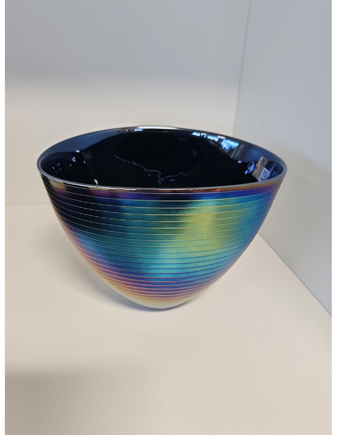 Il vaso della collezione Geo è realizzato in vetro di murano di colore nero con madreperla. Il colore cangiante conferisce unicità e il suo design moderno lo rende adatto a chi è attento ai dettagli e ama distinguersi.
