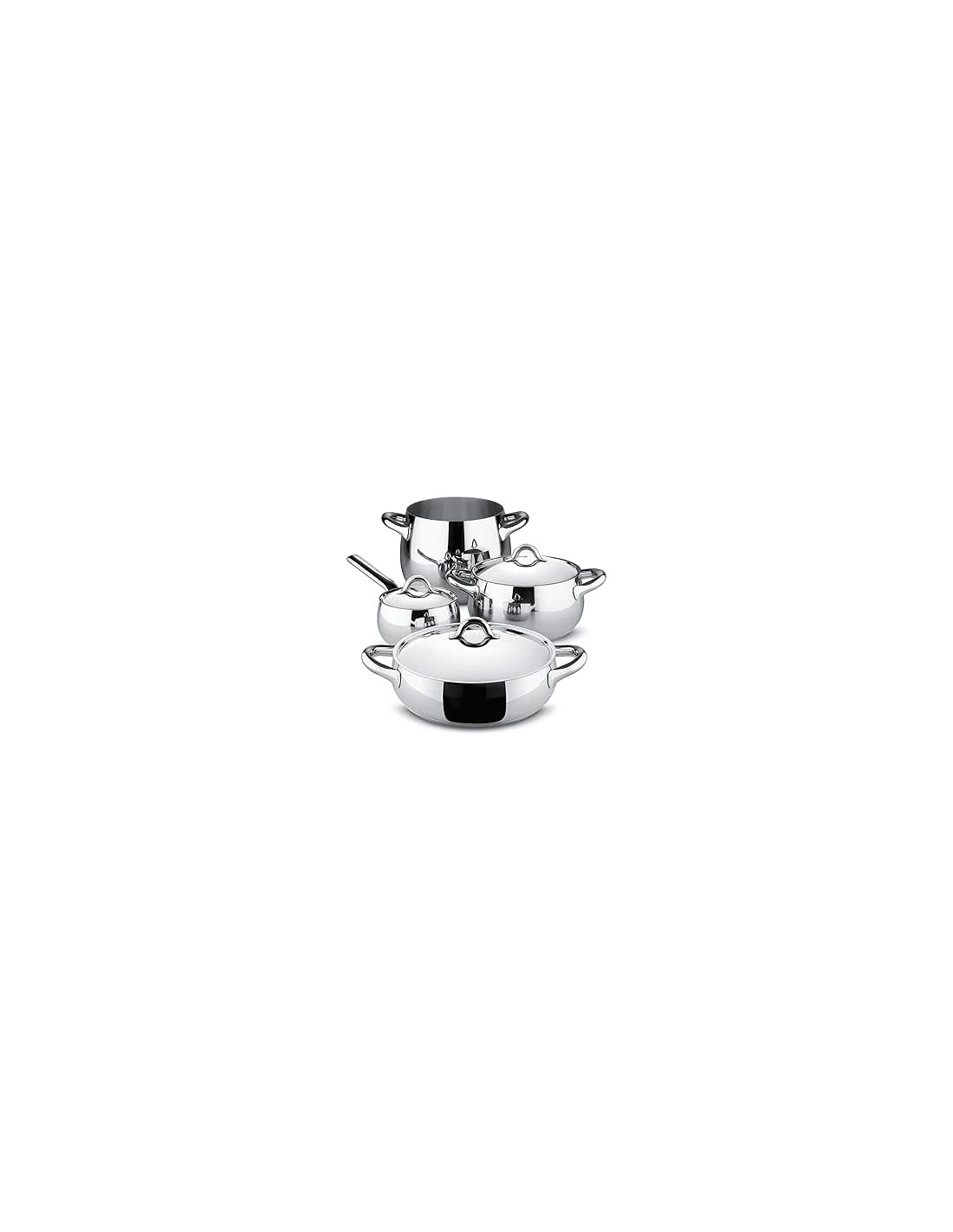Il set di pentole Mami, creato da Stefano Giovannoni, è realizzato in acciaio inossidabile 18/10 con finitura lucida.